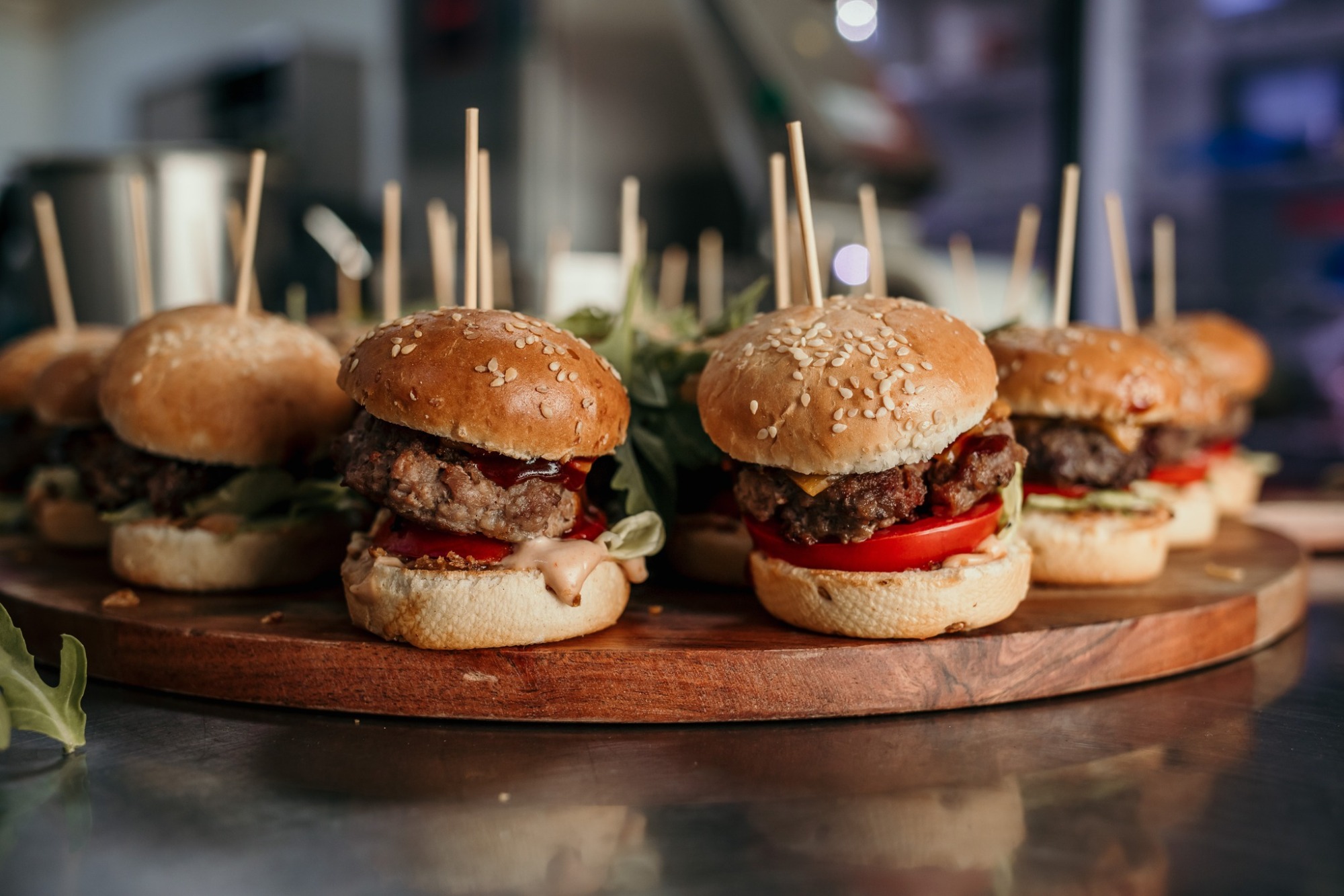 chiftea de vită, sos, ardei iute, ceapă caramelizată, dulceață de ceapă, inele de ceapă, cartofi wedges -